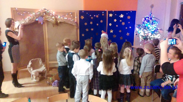 17 grudnia odbyła sie wigilia dzieci z oddziału przedszklonego z udziałem rodziców.Wszystkich gości powitała wych. M. Bajczyk i zaprosiła do obejrzenia jasełek.Następnie był czas na dzielenie się opłatkiem, świąteczne życzenia oraz smakołyki z wigilijnego stołu. Dzieci doczekały się tez wizyty Gwiazdora, który mimo niezbyt zimowej pogody dotarł do szkoły z worem prezentów. Radości nie było końca.