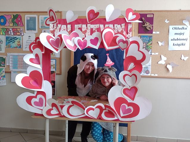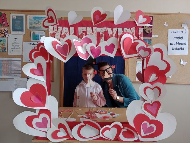 Dużym powodzeniem cieszyła się walentynkowa fotobudka, przygotowana przez ósmoklasistów.